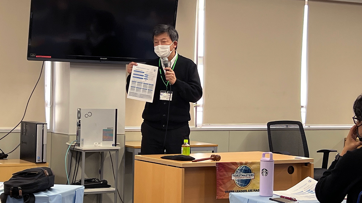 今回の講師はトーストマスターズのエリアディレクターとしても活躍中の梅本正和さんです。