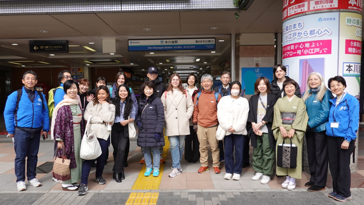 今回は、江戸の日に合わせた川越一番街の散策ツアーです。本川越駅で3チームに分かれて自己紹介と集合写真、その後、チーム毎に一番街を目指しました。大正浪漫通りの鯉のぼりや鳶はしご乗りに歓声を上げたり、侍や町娘に扮した町人と会話や写真撮影を楽しみました。