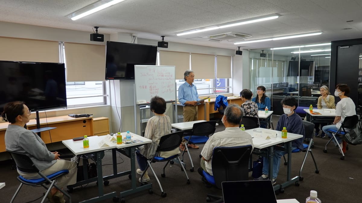 前半は、金子先生による効果的な英語の学び方についての座学。日英を交えてのご経験談に真剣に耳を傾けました。後半はテキストを使っての実践です。最後に、英語で一人ずつ自己紹介をし質問を受けました。最初は皆さん緊張した面持ちでしたが、回答から個性が垣間見え和気あいあいとした雰囲気に包まれました。